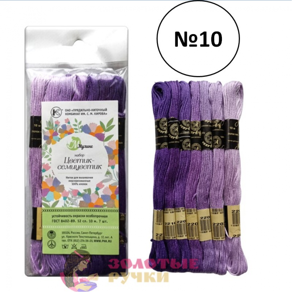 Набор мулине "Цветик-семицветик". Цвет: фиолетовый микс. Количество в упаковке: 7 шт. по 10 м