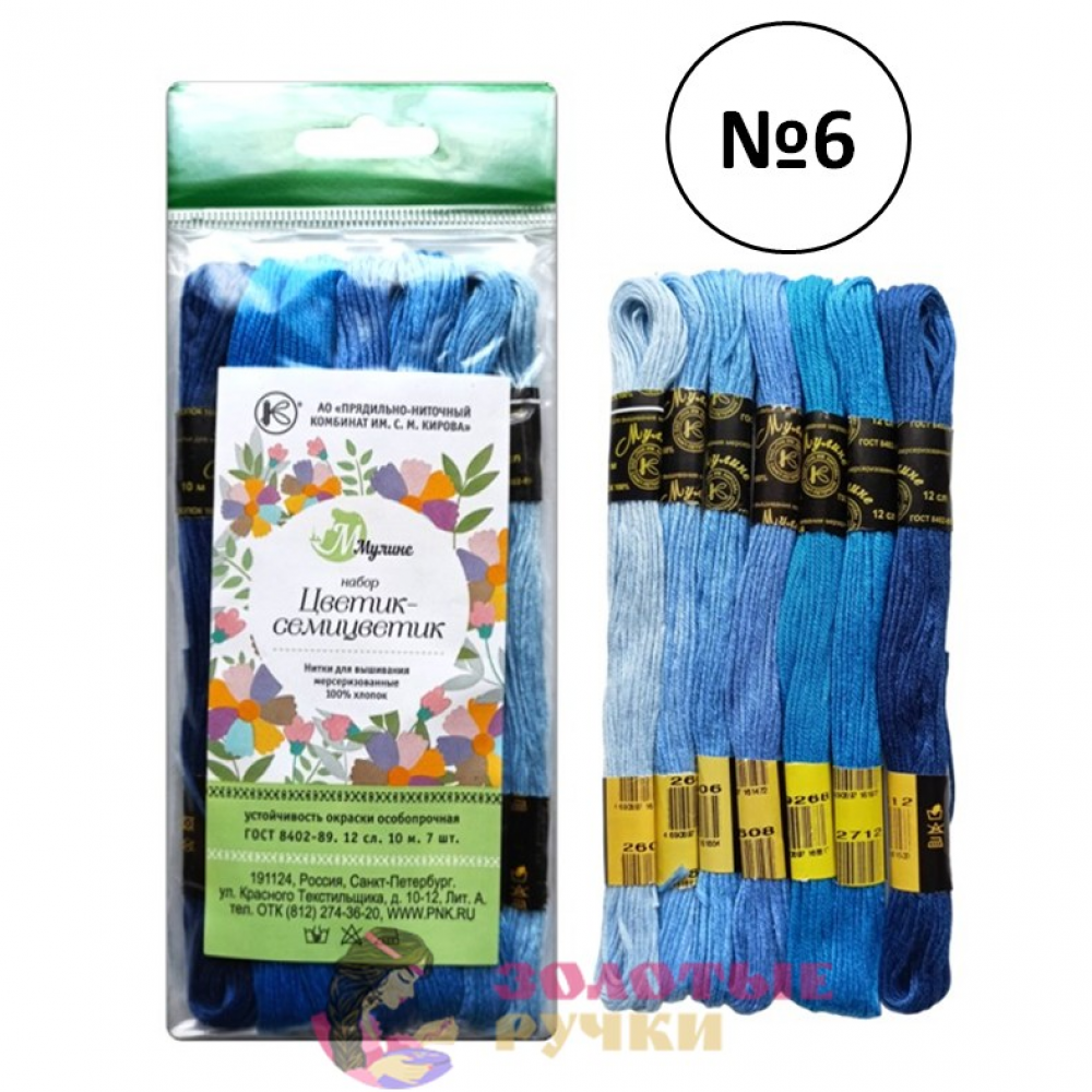 Набор мулине "Цветик-семицветик". Цвет: синий микс. Количество в упаковке: 7 шт. по 10 м