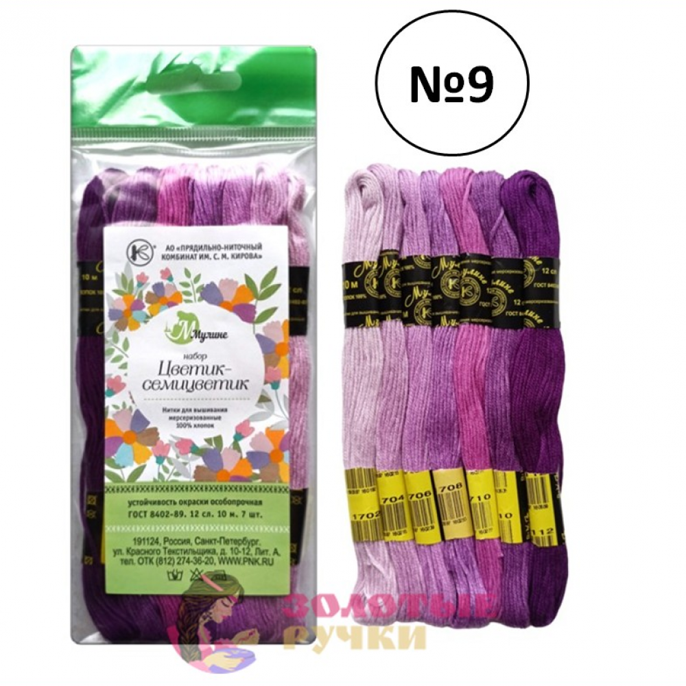Набор мулине "Цветик-семицветик". Цвет: сиреневый микс. Количество в упаковке: 7 шт. по 10 м