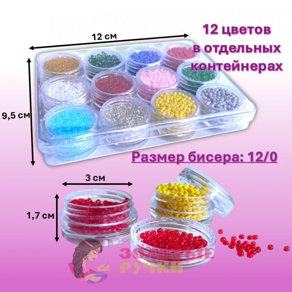 Набор бисера размер 12/0 цвет ассорти, идеально подходящий для творчества и рукоделия!
