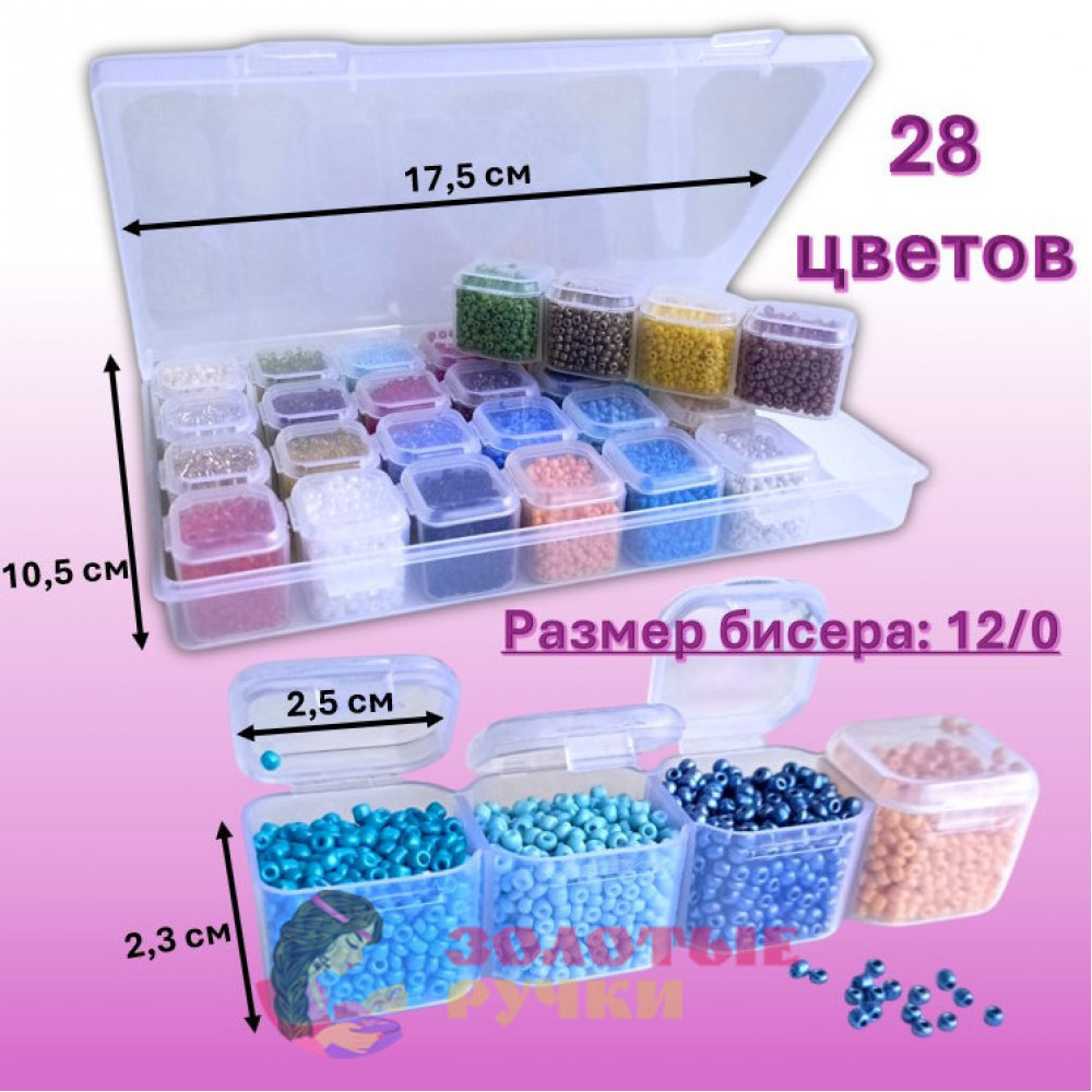 Набор бисера. Размер: 12/0. Количество в упаковке: 28 цветов.