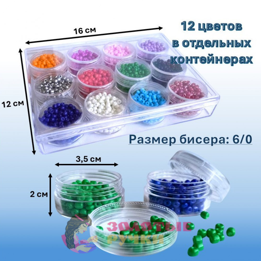 Набор бисера. Размер: 6/0. Количество в упаковке: 12 контейнеров. Цвет: ассорти.