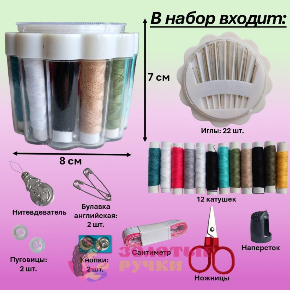 Швейный набор содержит все аксессуары для шитья, которые вам понадобятся во время отдыха или деловой поездки.