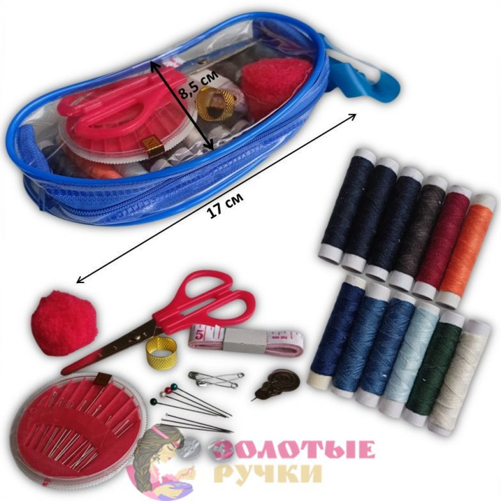 Набор для шитья и рукоделия в прозрачной сумочке. Цвета в ассортименте