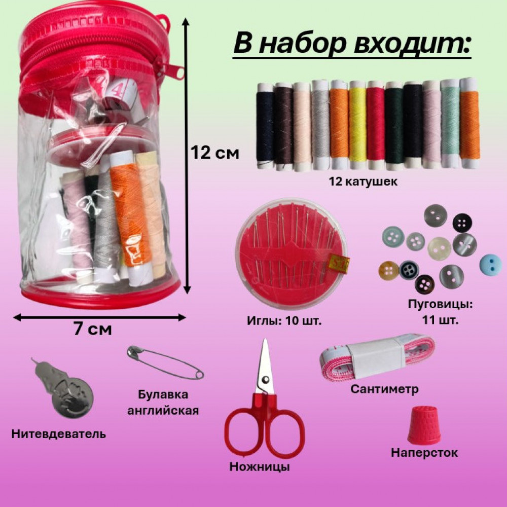 Швейный набор содержит все аксессуары для шитья, которые вам понадобятся во время отдыха или деловой поездки.