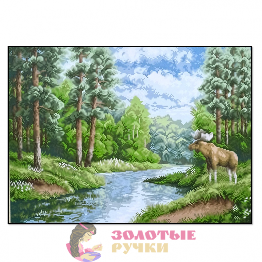 Набор для вышивки крестом "Лось на берегу". Размер: 40*50 см