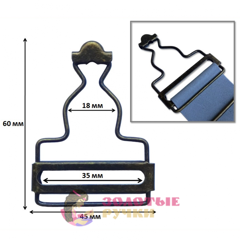 Застежка для комбинезона предназначена для ширины лямки 35 мм.