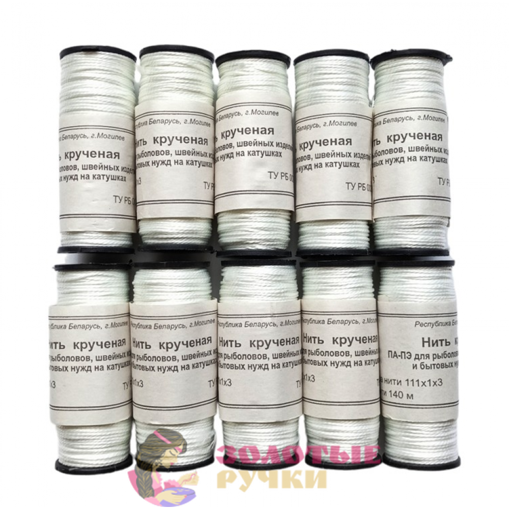 Нить крученая ПА-ПЭ. Количество в упаковке: 10 шт. по 140 м. Цвет: белый