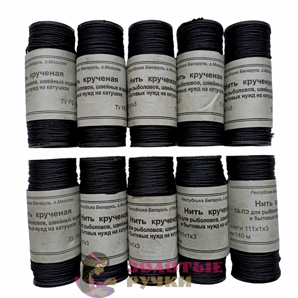 Нить крученая ПА-ПЭ. Количество в упаковке: 10 шт. по 140 м. Цвет: черный