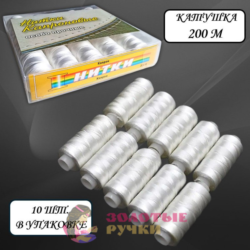 Нитки капроновые особо прочные. Количество в упаковке: 10 шт. Цвет: белый