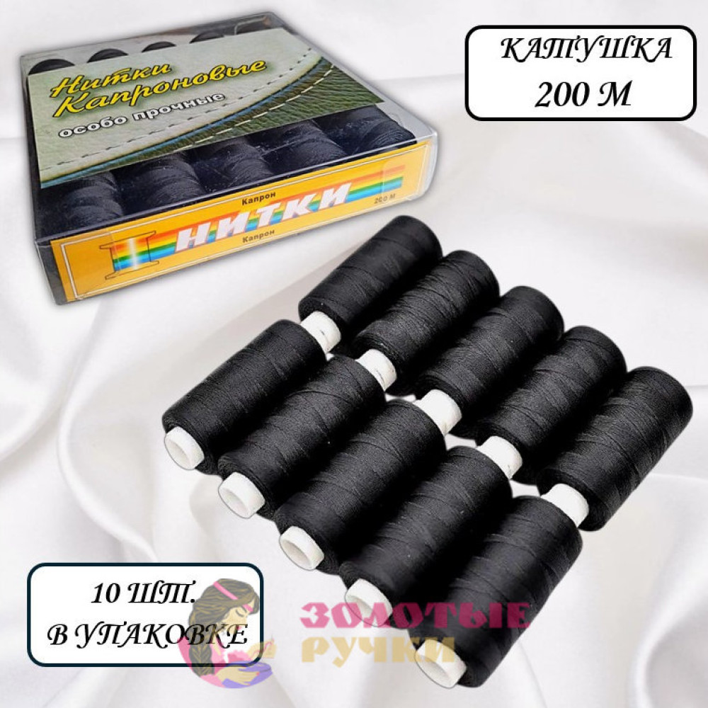 Нитки капроновые особо прочные. Количество в упаковке: 10 шт. Цвет: черный