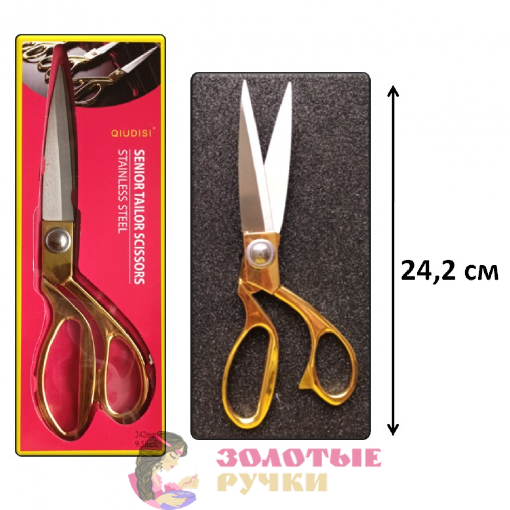 Ножницы портновские "QIUDISI". Длина: 24,2 см. Цвет: золото