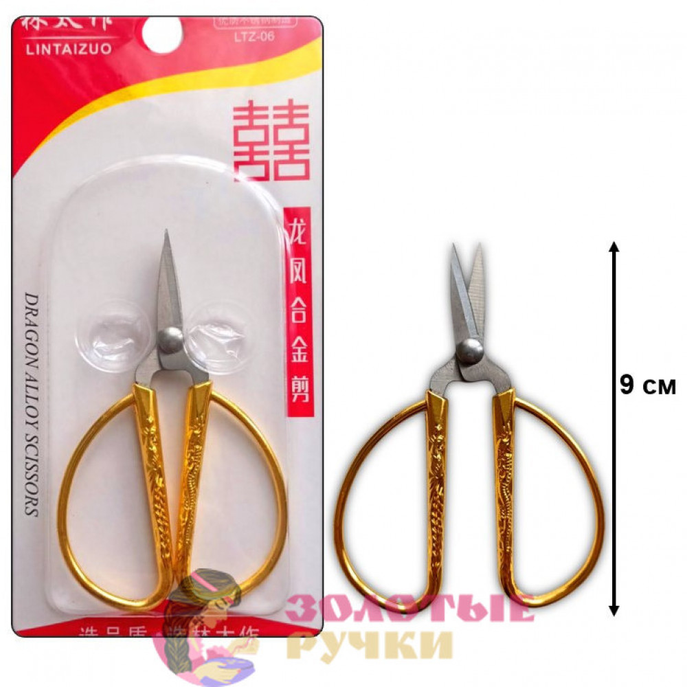 Ручка ножниц изготовлена из цинкового сплава с качественной позолотой и тиснением в виде традиционного китайского дракона и феникса.