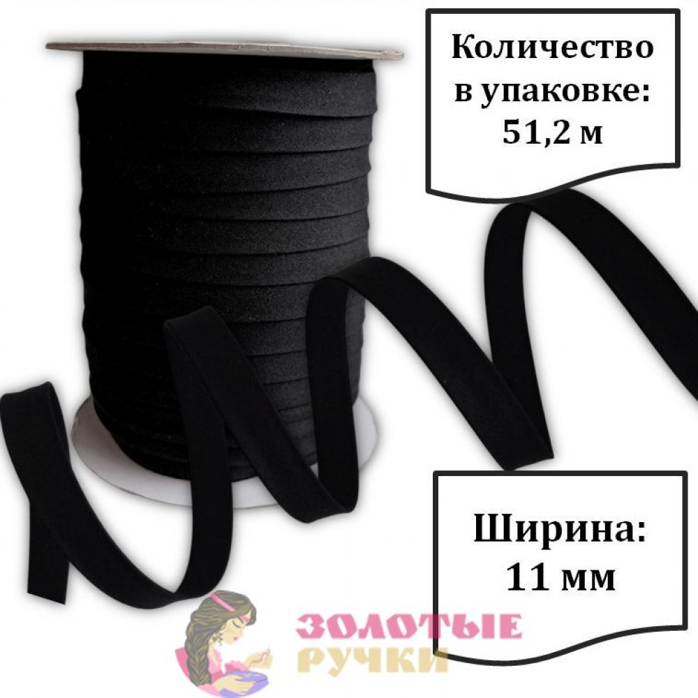 Окантовочная лента Х/Б. Ширина: 11 мм. Количество в упаковке: 51,2 м. Цвет: черный