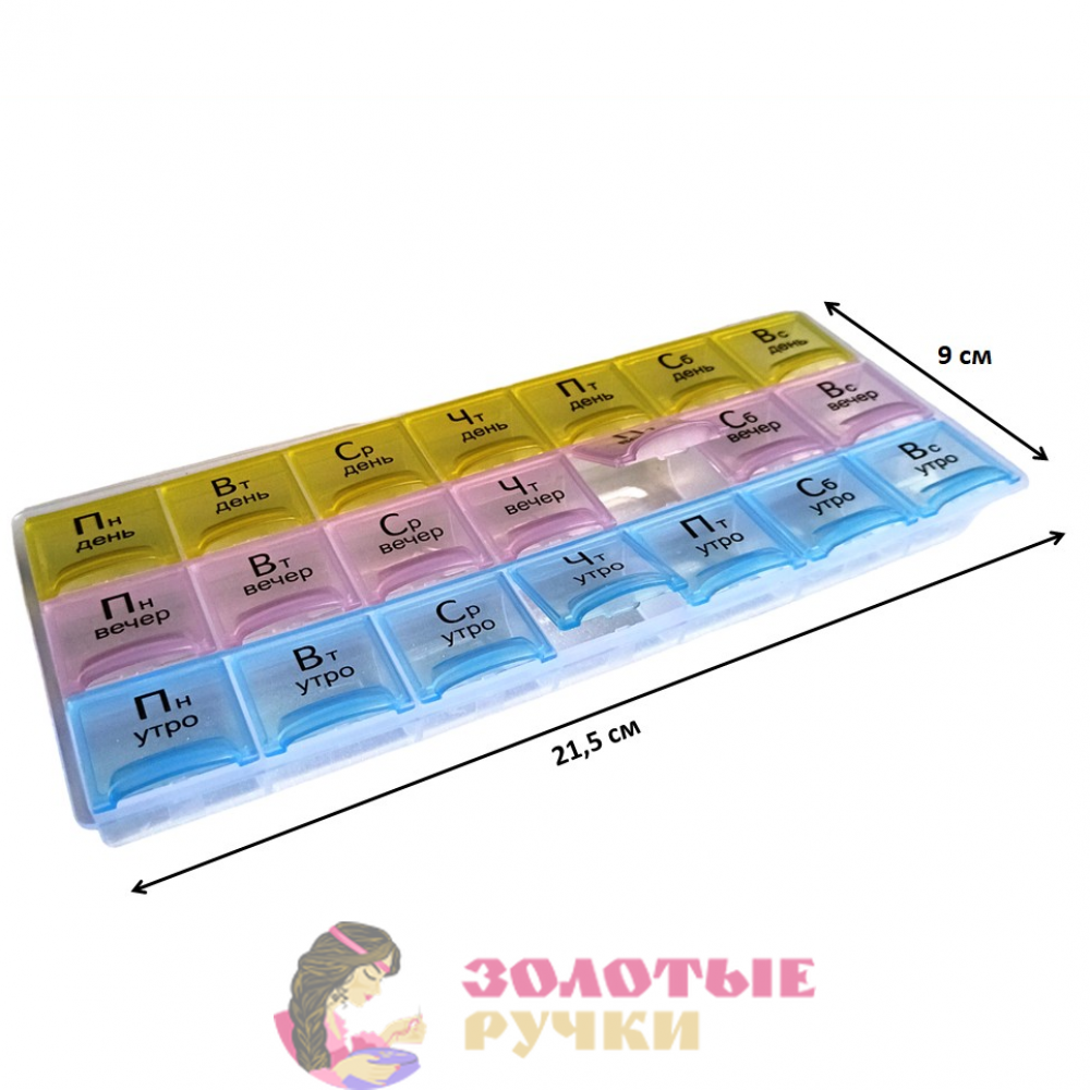 Органайзер для таблеток , цвет: микс , 21 ячейка