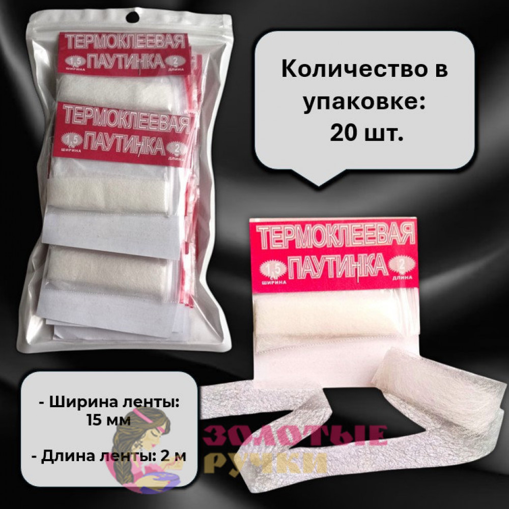 Паутинка термоклеевая. Ширина: 15 мм. Цвет: белый. Количество в упаковке: 20 шт. по 2 м