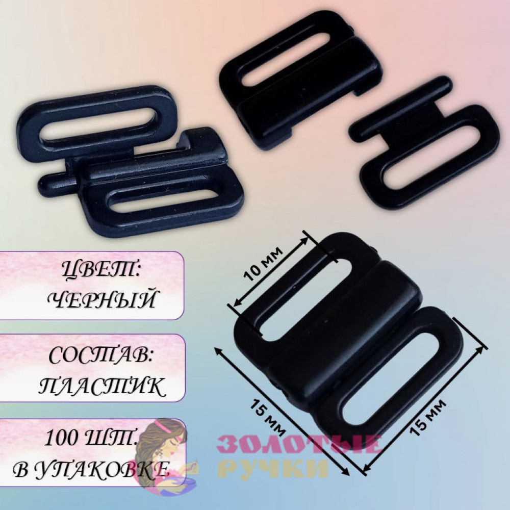 Пряжка-застежка для бюстгальтера, купальника. Цвет: черный. Количество в упаковке: 100 шт.