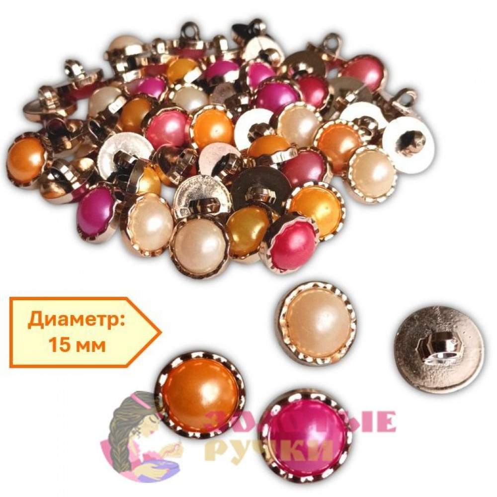 Пуговицы на ножке "Ассорти в золоте". Диаметр: 15 мм. Количество в упаковке: 50 шт.