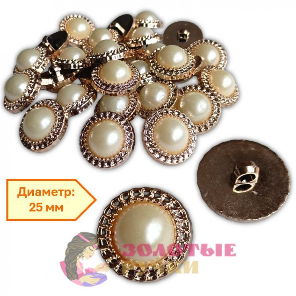 Пуговицы на ножке "Жемчуг в золоте". Диаметр: 25 мм. Количество в упаковке: 30 шт.