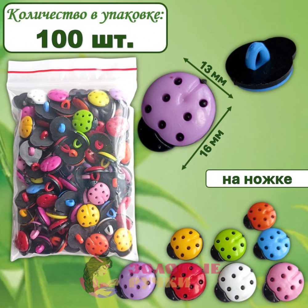 Пуговицы разноцветные "Божьи коровки". Размер: 16*13 мм. Количество в упаковке: 100 шт.
