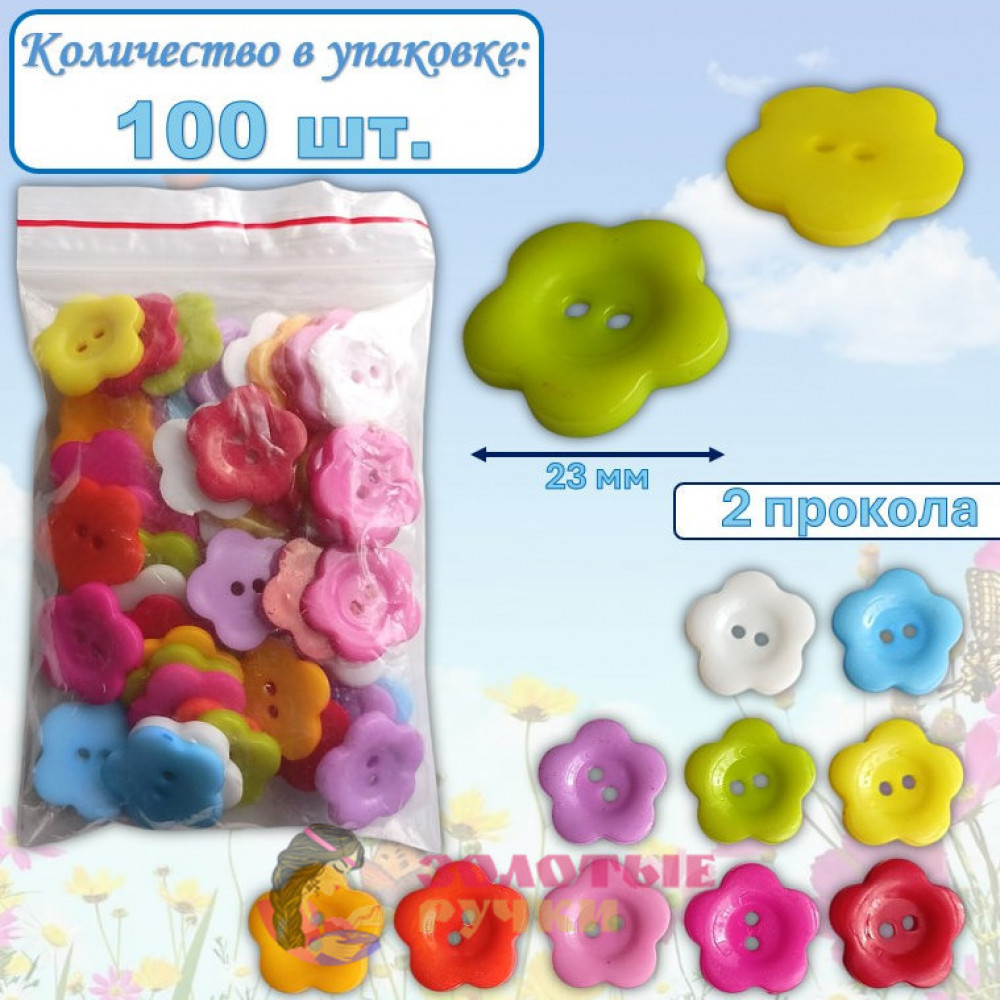Пуговицы разноцветные "Цветок". Диаметр: 23 мм. Количество в упаковке: 100 шт.