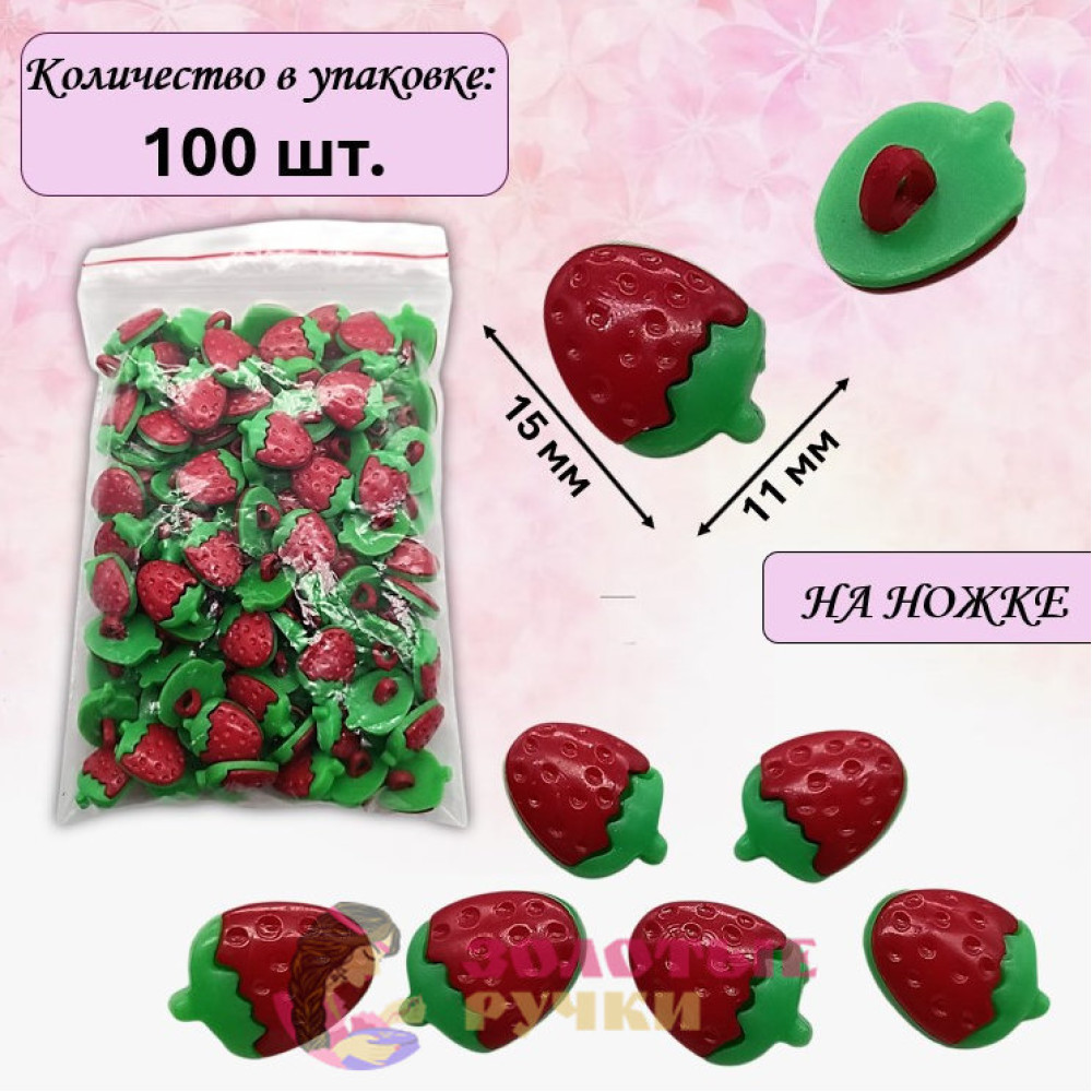Пуговицы разноцветные "Клубничка". Размер: 15*11 мм. Количество в упаковке: 100 шт.