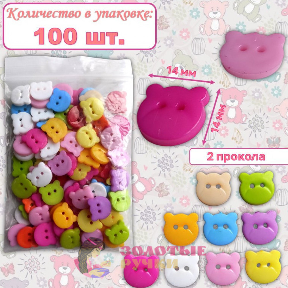 Пуговицы разноцветные "Мишки". Размер: 14*14 мм. Количество в упаковке: 100 шт.