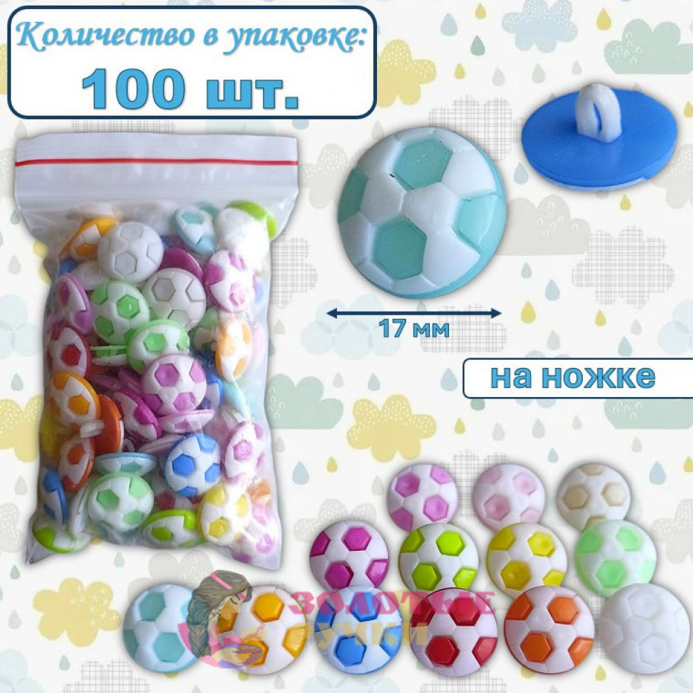Пуговицы разноцветные "Мячик" на ножке. Диаметр: 17 мм. Количество в упаковке: 100 шт.