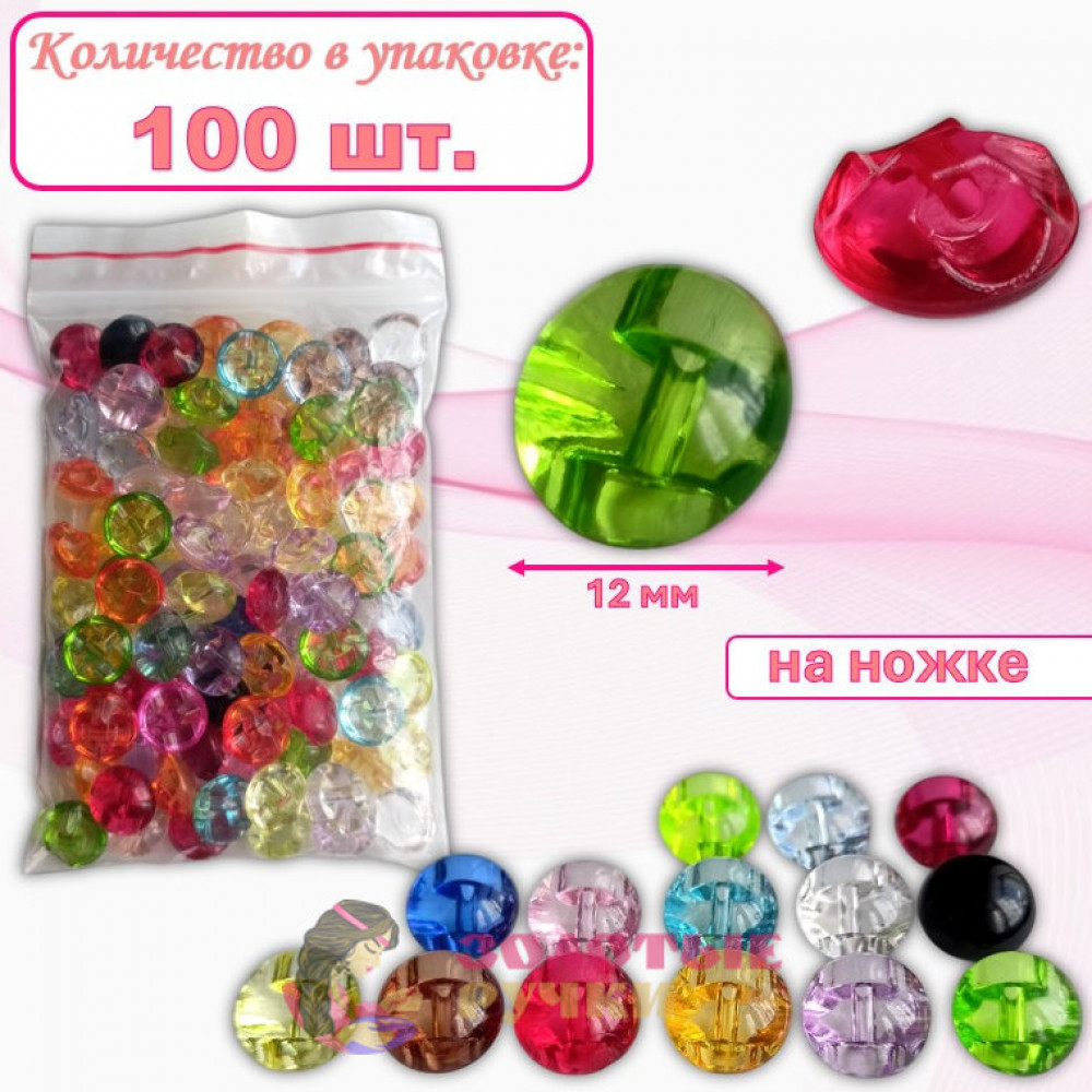 Пуговицы разноцветные прозрачные. Размер: 12 мм. Количество в упаковке: 100 шт.
