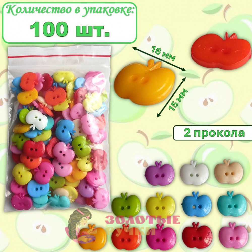 Пуговицы разноцветные "Яблочко". Размер: 15*16 мм. Количество в упаковке: 100 шт.