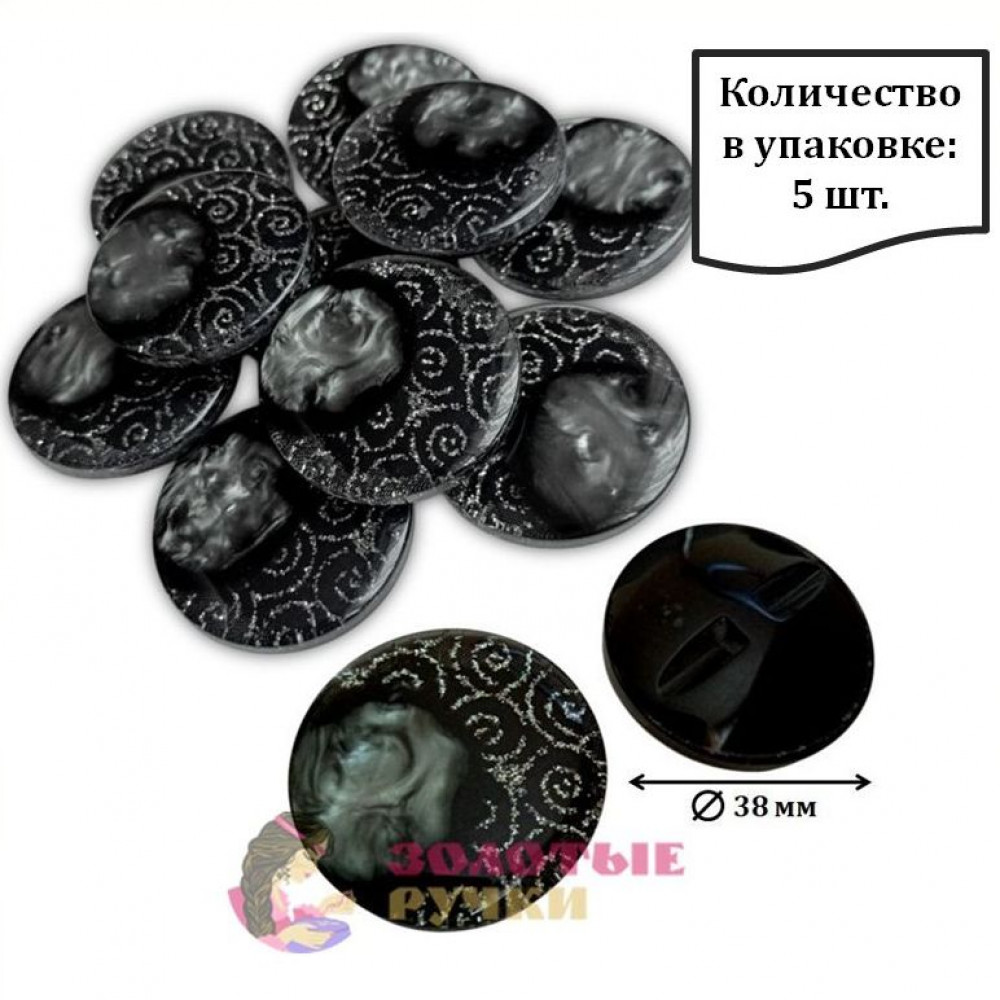 Пуговицы шубные, пальтовые. Диаметр: 38 мм. Цвет: черный с серебром. Количество в упаковке: 5 шт.
