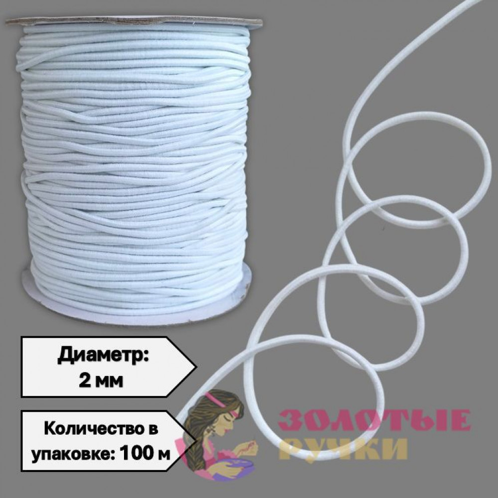 Резинка шляпная. Диаметр: 2 мм. Количество в упаковке: 100 м. Цвет: белый