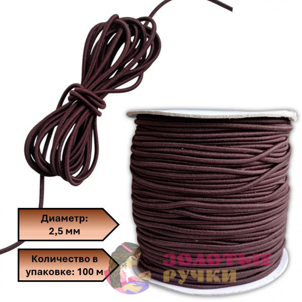 Резинка шляпная. Диаметр: 2,5 мм. Количество в упаковке: 100 м. Цвет: коричневый