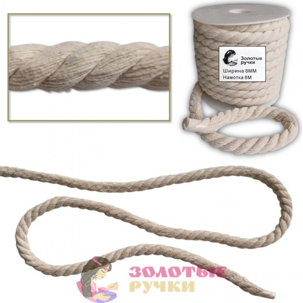Шнур хлопковый кручёный. Диаметр: 8 мм. Количество в упаковке: 8 м. Цвет: молочный