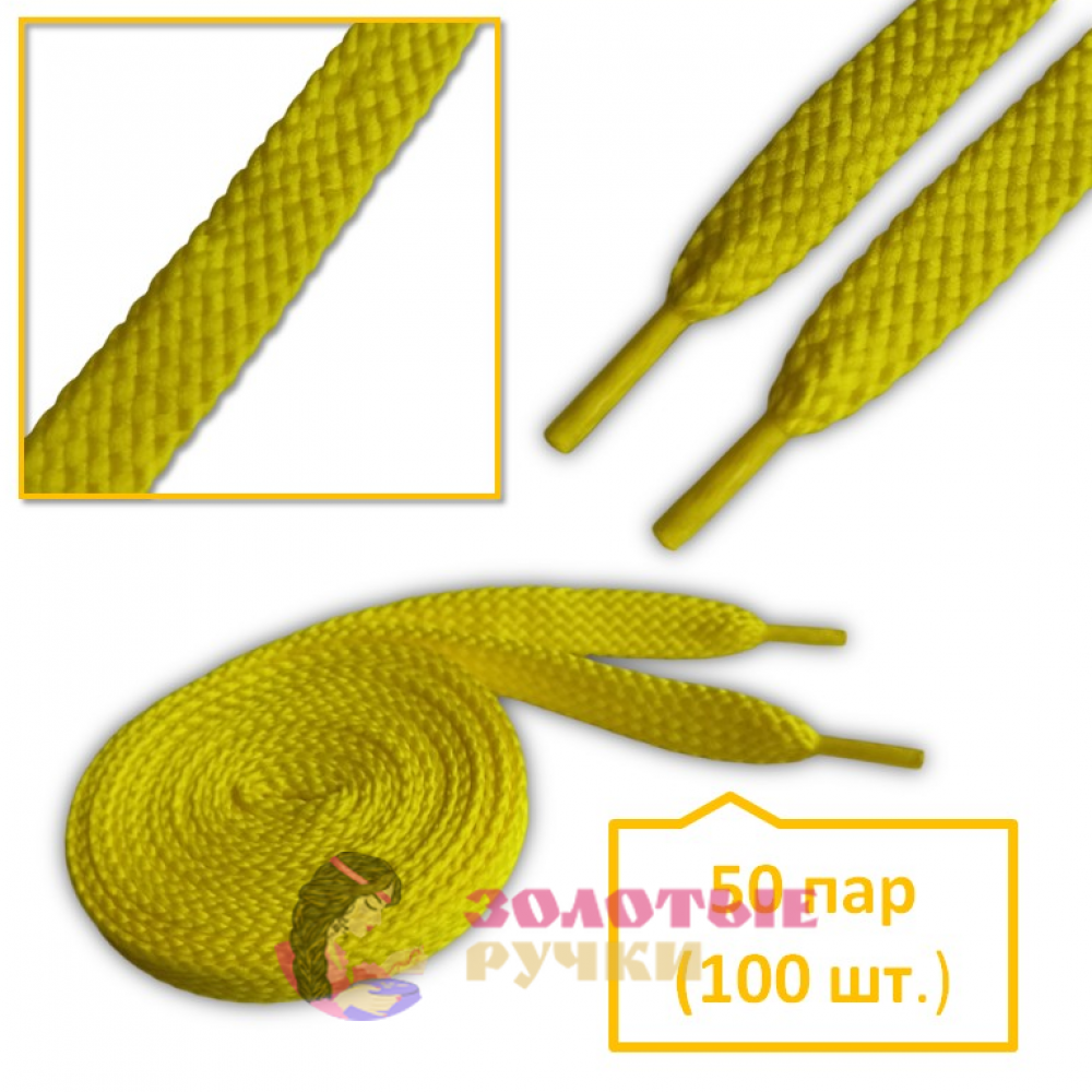 Шнурки кроссовочные. Длина: 100 см. Ширина: 10 мм. Цвет: желтый. Количество в упаковке: 50 пар (100 шт.)