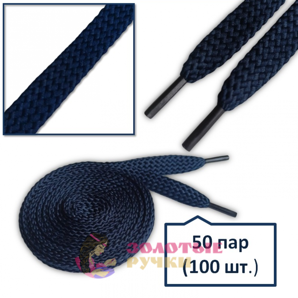 Шнурки кроссовочные. Длина: 100 см. Ширина: 10 мм. Цвет: темно-синий. Количество в упаковке: 50 пар (100 шт.)
