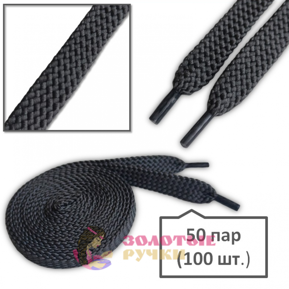 Шнурки кроссовочные. Длина: 100 см. Ширина: 10 мм. Цвет: серый. Количество в упаковке: 50 пар (100 шт.)