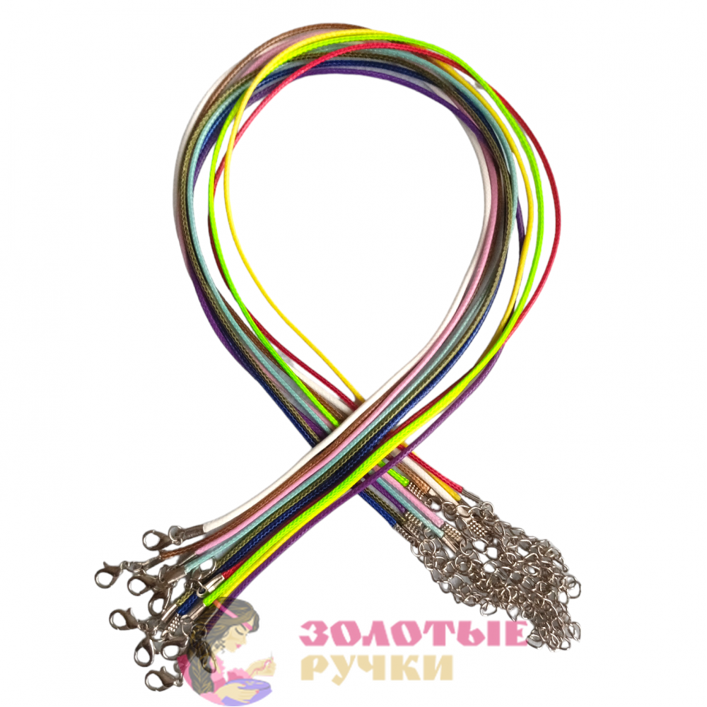 Шнурок для бижутерии вощеный. Длина: 43 см. Диаметр: 2 мм. Цвет: микс. Количество в упаковке: 10 шт.