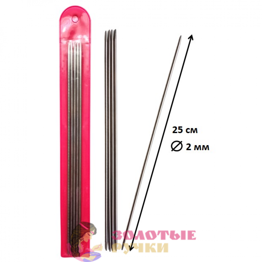 Спицы носочные для вязания. Размер: 25 см. Диаметр: 2 мм. Количество в упаковке: 5 шт.