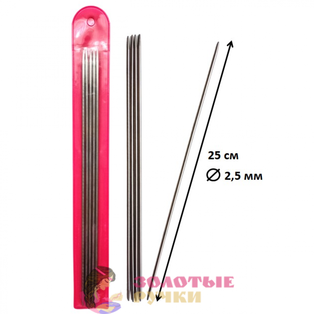 Спицы носочные для вязания. Размер: 25 см. Диаметр: 2,5 мм. Количество в упаковке: 5 шт.