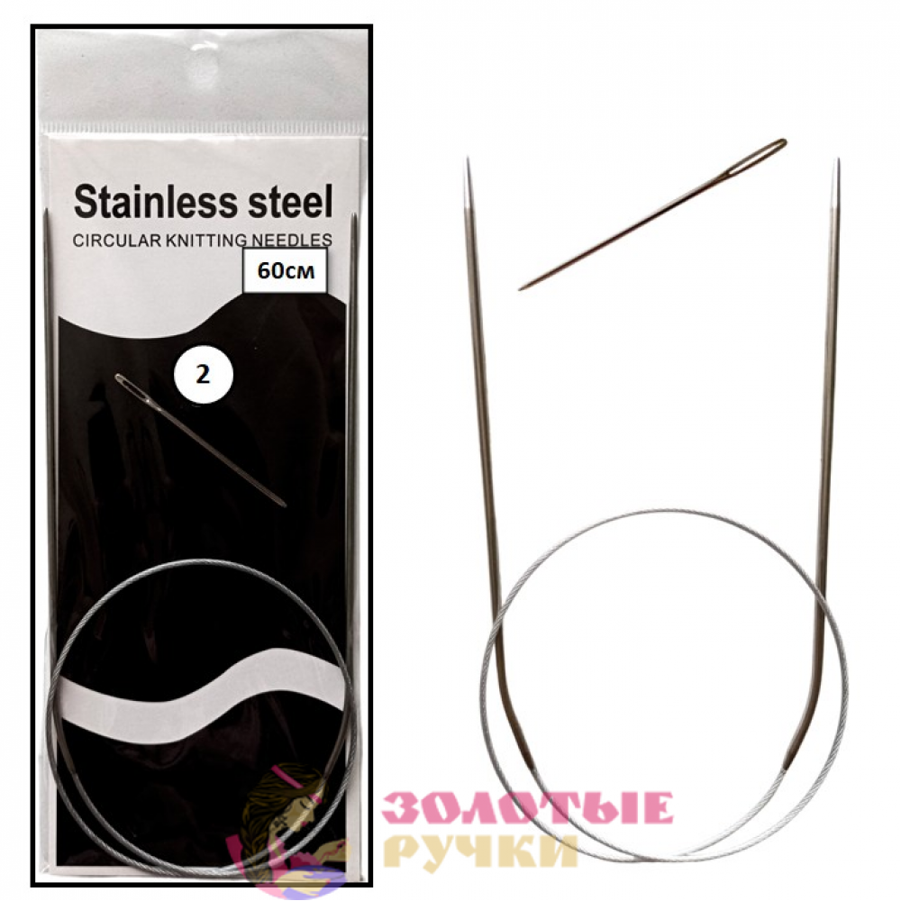 Спицы для вязания круговые металлические на тросике. Размер: 60 см. Диаметр: 2 мм