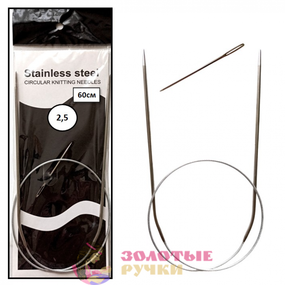 Спицы для вязания круговые металлические на тросике. Размер: 60 см. Диаметр: 2,5 мм