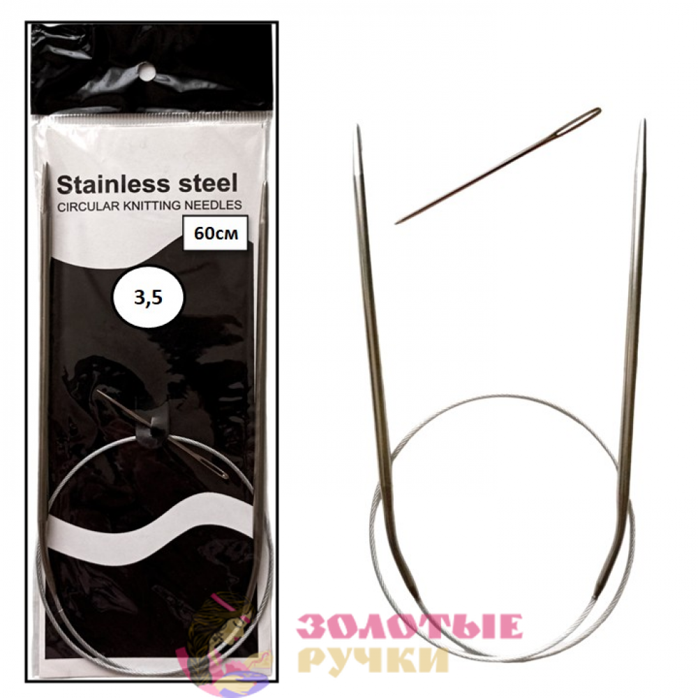 Спицы для вязания круговые металлические на тросике. Размер: 60 см. Диаметр: 3,5 мм