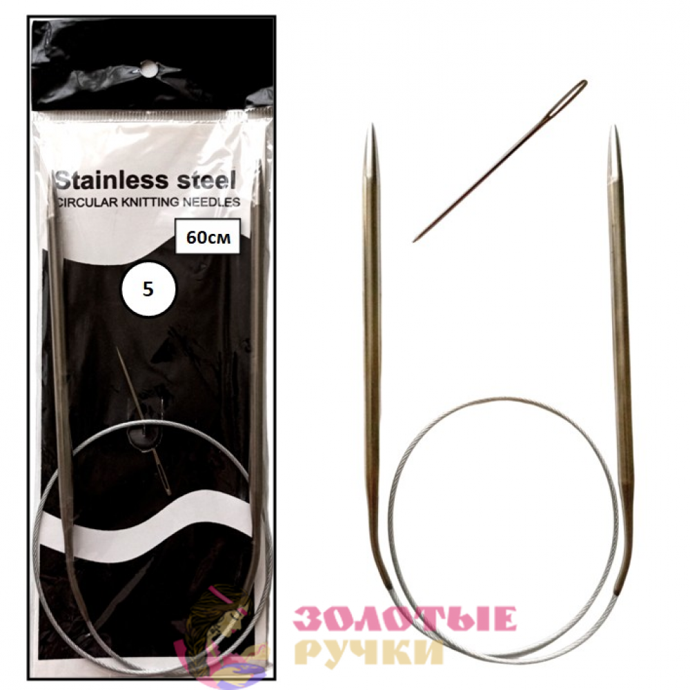 Спицы для вязания круговые металлические на тросике. Размер: 60 см. Диаметр: 5 мм