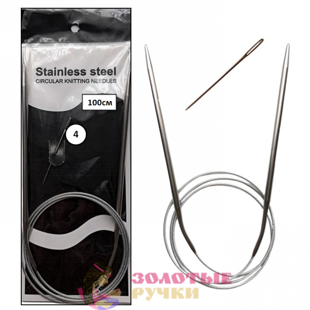 Спицы для вязания круговые металлические на тросике. Размер: 100 см. Диаметр: 4 мм