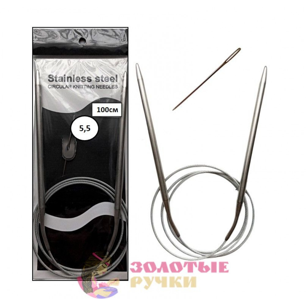 Спицы для вязания круговые металлические на тросике. Размер: 100 см. Диаметр: 5,5 мм