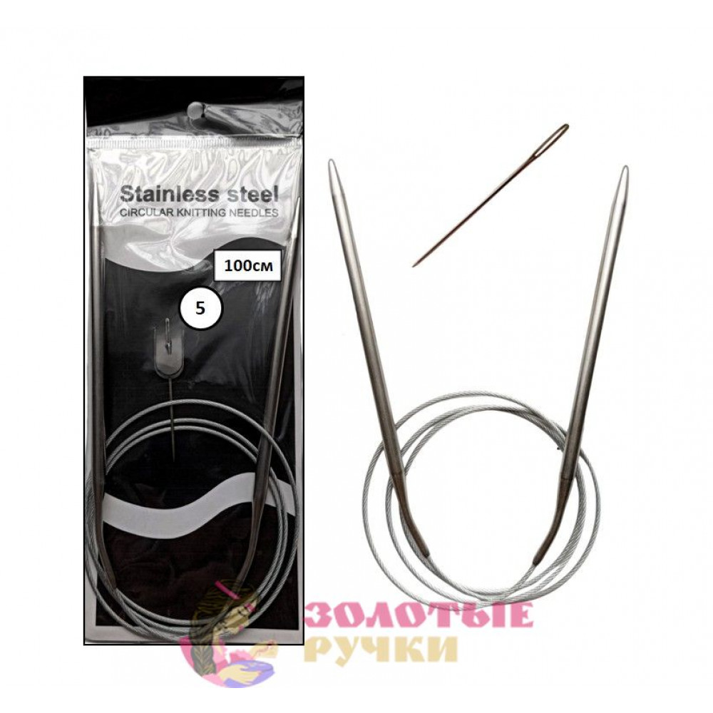 Спицы для вязания круговые металлические на тросике. Размер: 100 см. Диаметр: 5 мм