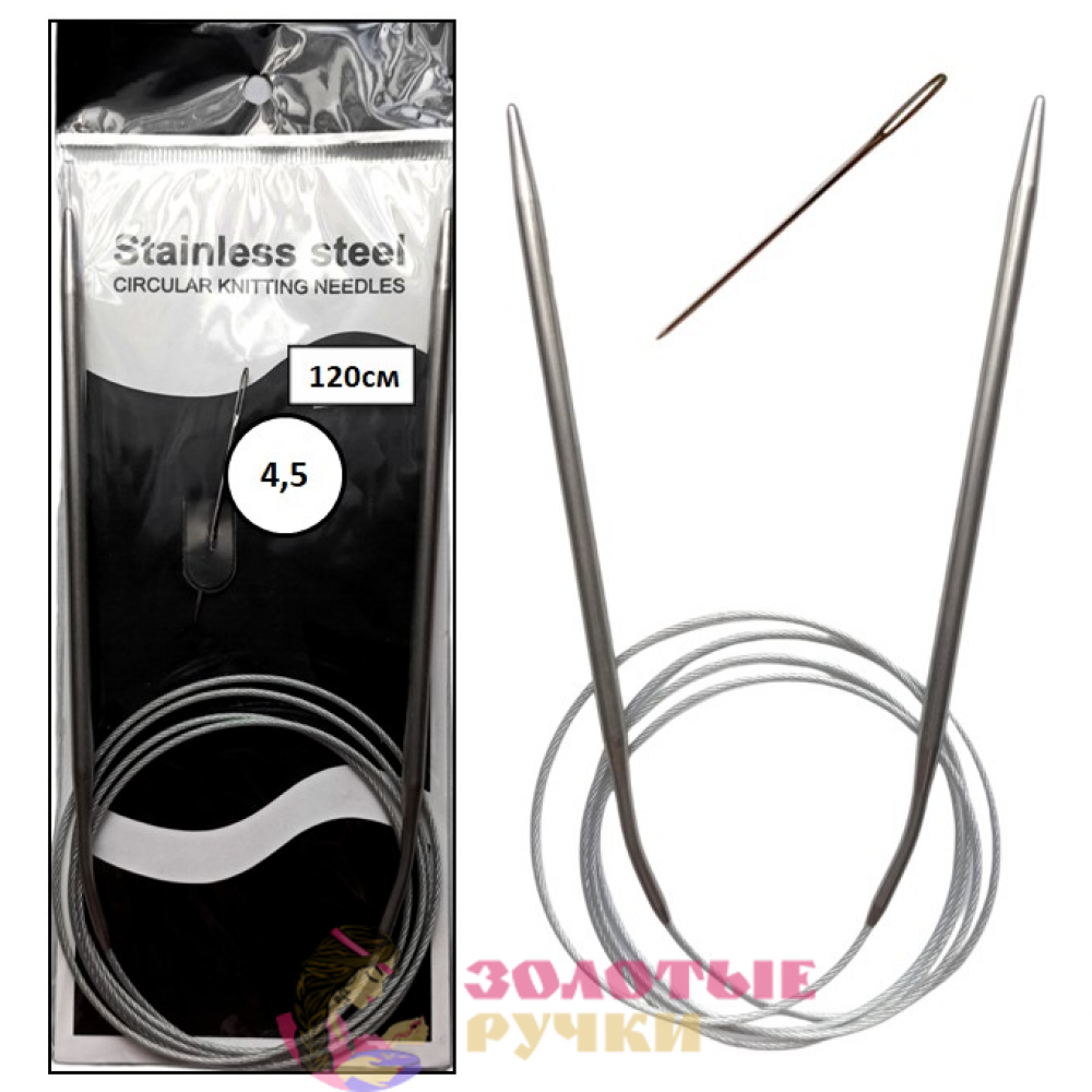 Спицы для вязания круговые металлические на тросике. Размер: 120 см. Диаметр: 4,5 мм