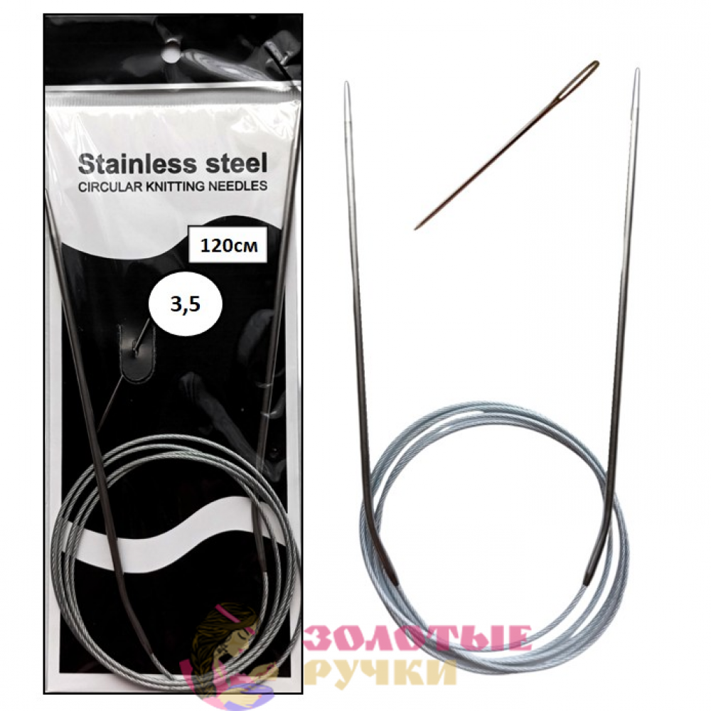 Спицы для вязания круговые металлические на тросике. Размер: 120 см. Диаметр: 3,5 мм