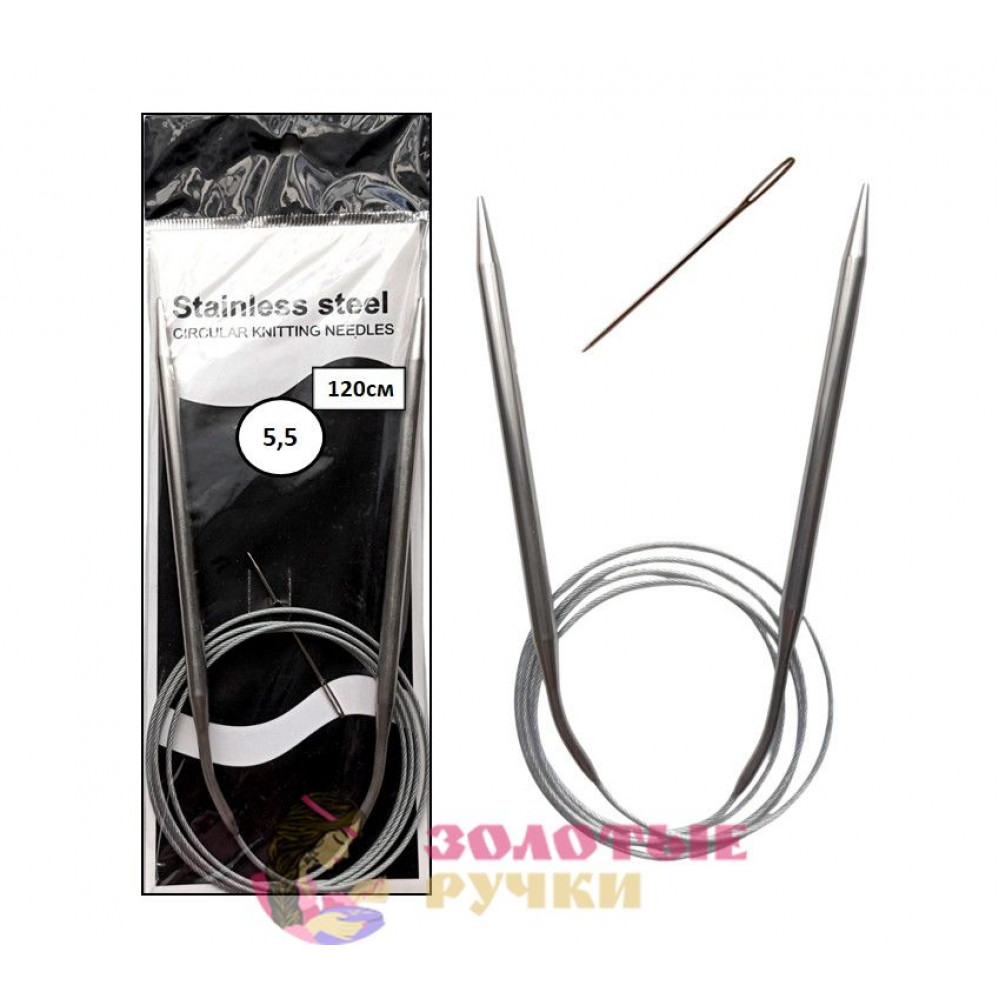 Спицы для вязания круговые металлические на тросике. Размер: 120 см. Диаметр: 5,5 мм